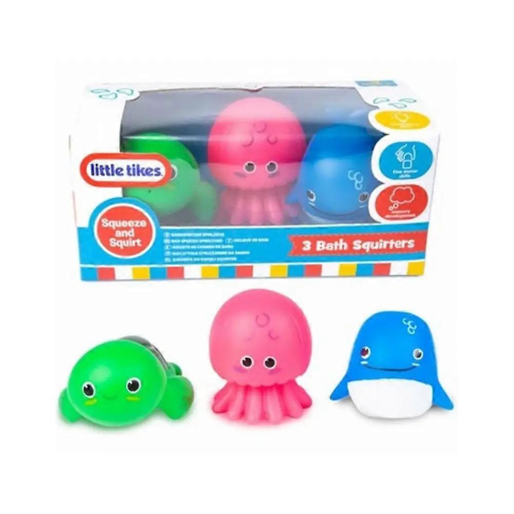 FEATURES 3 cute ocean creatures - Turtle, Whale, Squid Detailed, colourful and fun Imaginative Play Helps develop fine motor skills Suitable for 18m+ These Ocean friends come in an array of vibrant colours that are sure to capture your child's attention. Enhance their sensory experience as they explore the colourful underwater world during bath time. This Box of 3 Little Tikes Toy Squirters is a great way to introduce your children to the water in a fun, exciting and memorable way. Make bath time an event to look forward too...