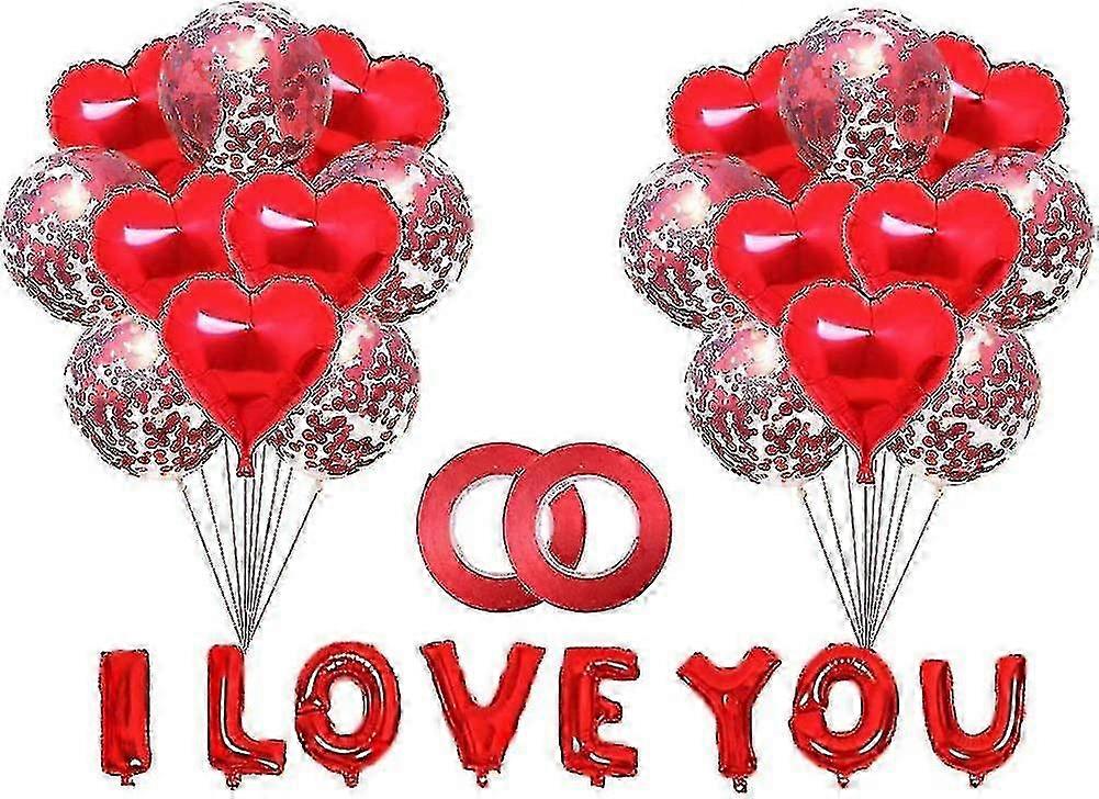 I Love You Balloons Set - 10 Inch Latex and Foil Heart Balloons for Parties & Celebrations