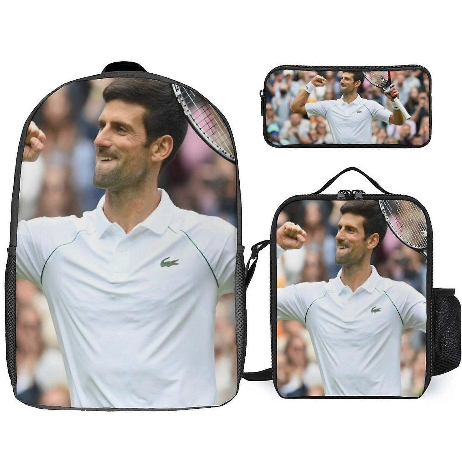 i5307 Novak Djokovic Backpack Set of Three 17 Inch Daypack Lunch Carrier and Zippered Pencil Bag w5307
