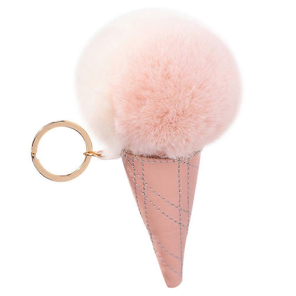 Ice Cream Keychain Pom Pom Plush Charm Keyring for Key Holding