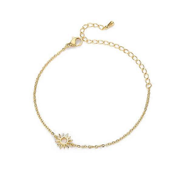 ICFTZWE Sun Hollow Bangle for Women Stainless Steel Hand Chain Vintage Sunflower Anklet Boho Foot Jewelry Gold Color