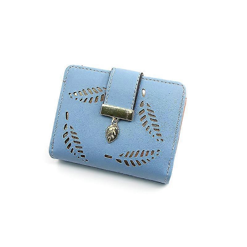 Zip Around Leather Wallet With Id Window, Short Bifold Money Clip Coin Purse Card Holder Leaf Clutch For Women Teenage Girl Gift(1pc, Light Blue