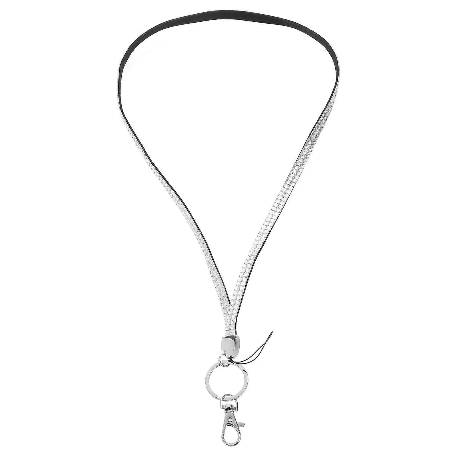 Id Card Neck Strap Lanyards Rhinestone Lanyard White 46.00X3.00X0.60Cm Holds Id Badge 1Set