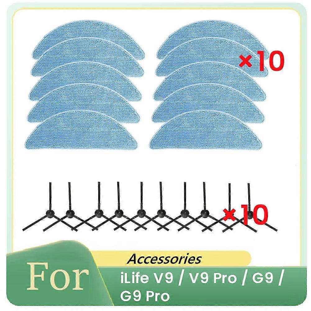 20 Pcs Side Brush and Rag for ILife V9 / V9 Pro Robot Vacuum Cleaner