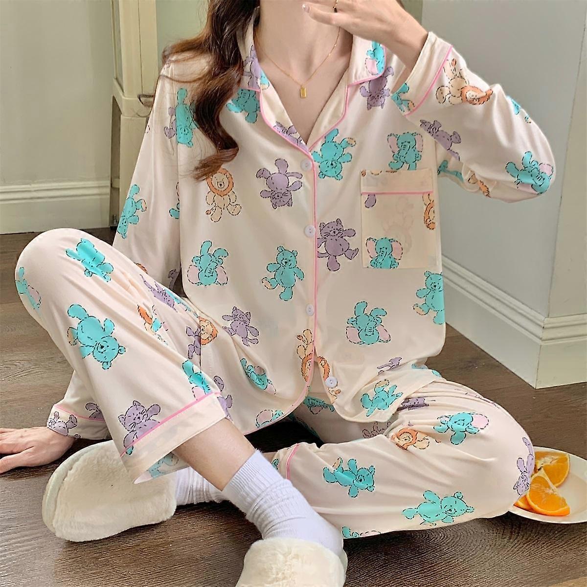 Ins Style Cartoon Cute Bear Women's Pajamas Long Sleeve Sweet Casual Long Sleeve Pants Loungewear