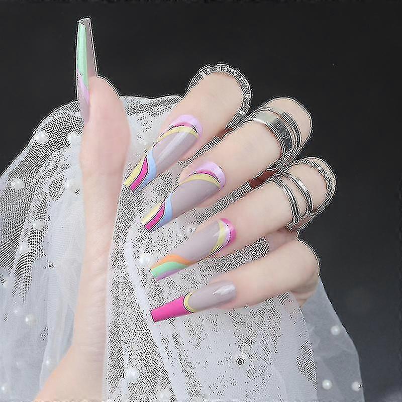 Ins Storm Pattern Europe And The United States Wearing Armor Contrasting Color Gorgeous 7-color False Nails Multi-color Printing Manicure Nail Sticker