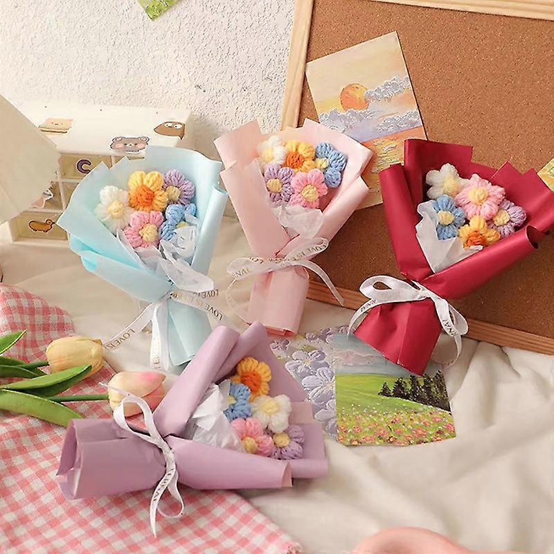 Ins Hand-woven Artificial Flowers Creative Crochet Flower Bouquet Valentine's Day Gift