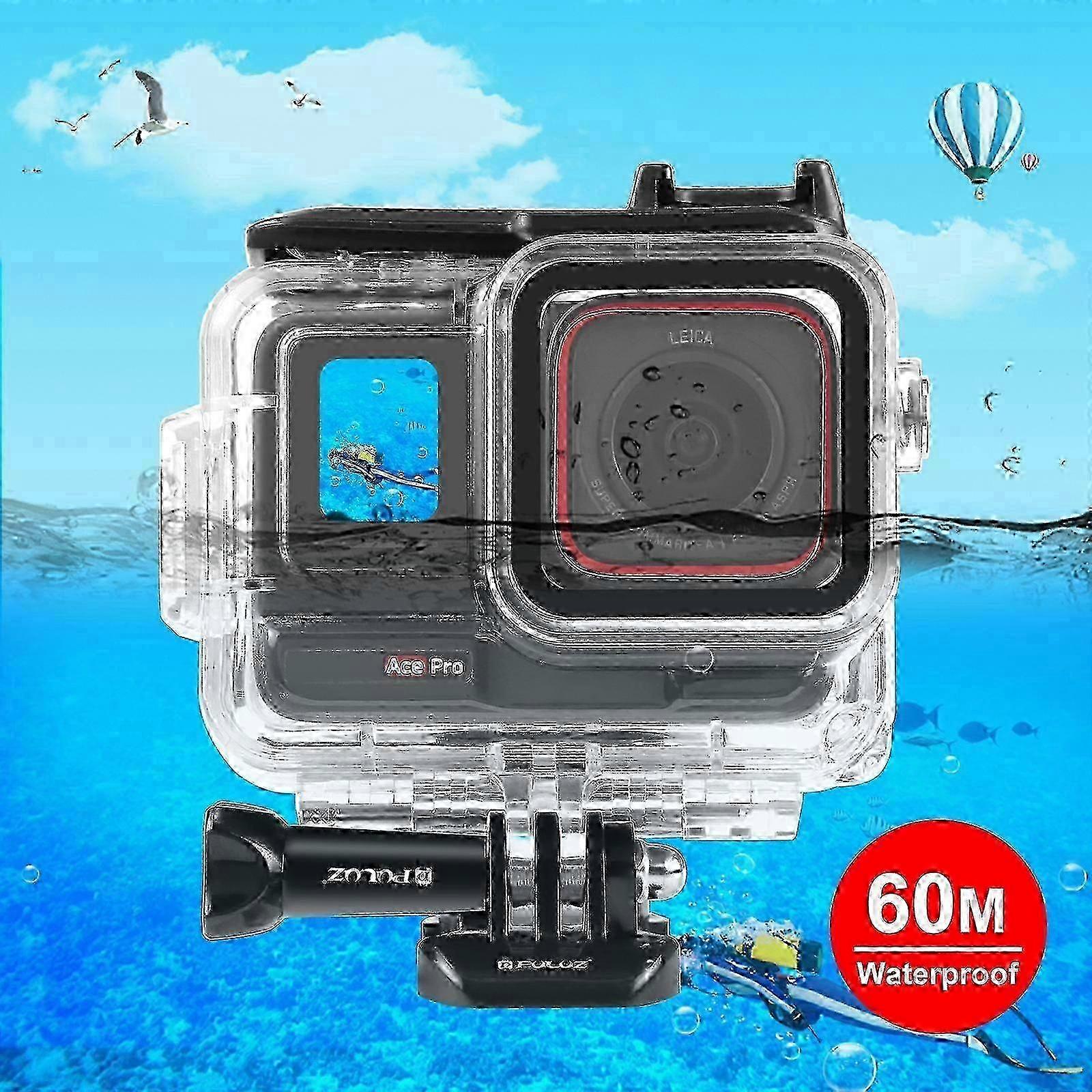 For Insta360 Ace Pro Puluz 60m Underwater Waterproof Housing Case With Base Adapter Screw (transparent)