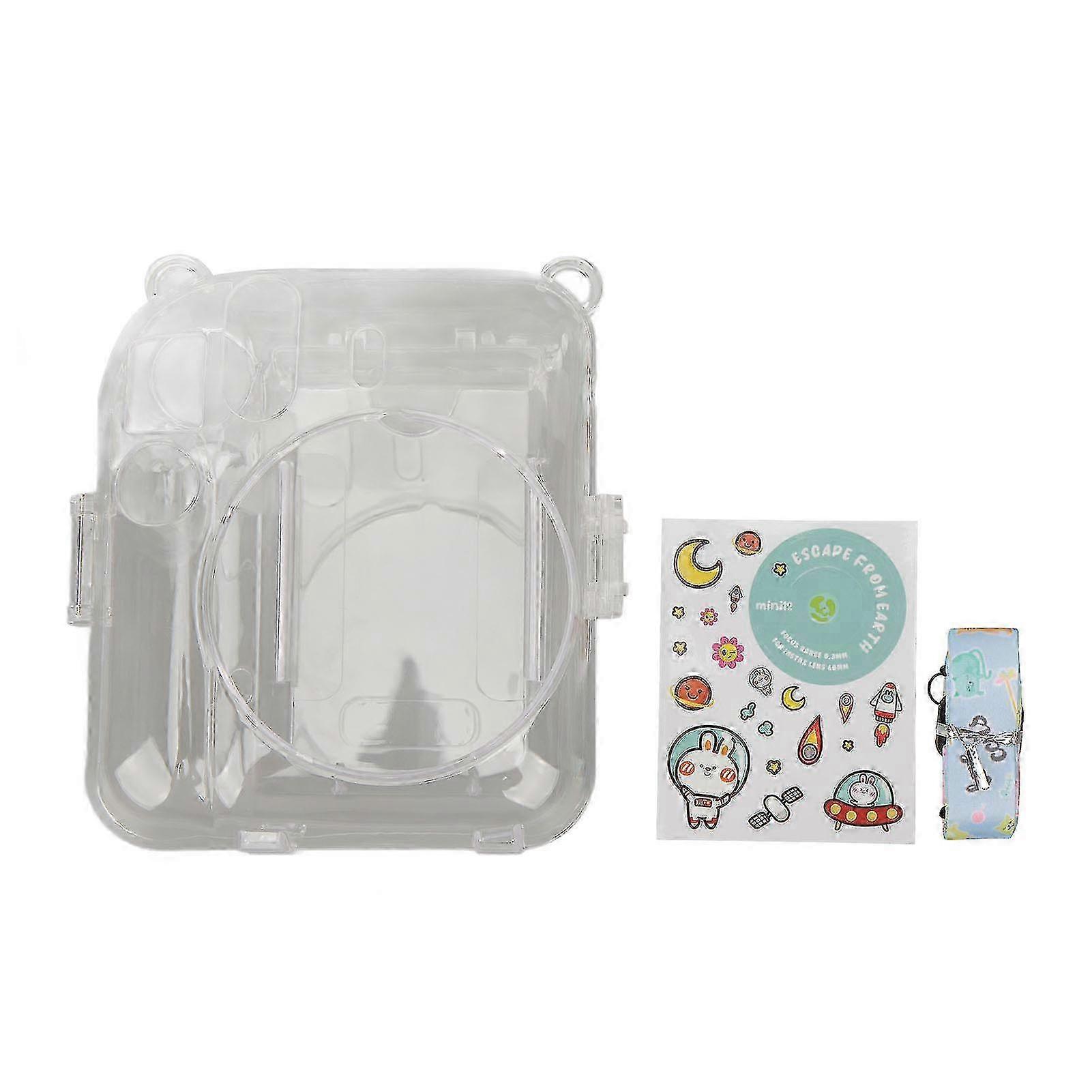 Instax Mini 12 Camera Case Blue, Clear Protective Cover with Shoulder Strap, Durable Instant Camera Bag Kit, Cute Sticker Accessories for Travel