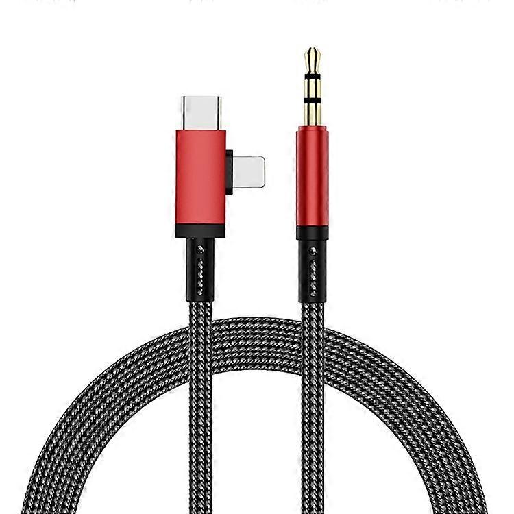 iP + Type-C 2-in-1 Car Audio Cable 1m Plug and Play Nylon Braided Wire with 3.5mm Jack