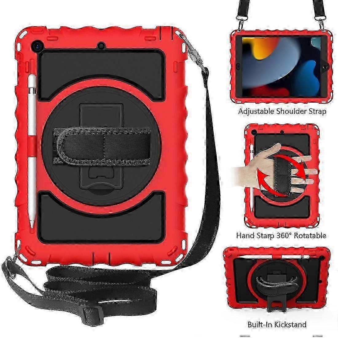 For iPad 10.2 360 Degree Rotating Case with Pencil Holder, Kickstand Shockproof Heavy Duty with Shoulder Strap,Hand Strap