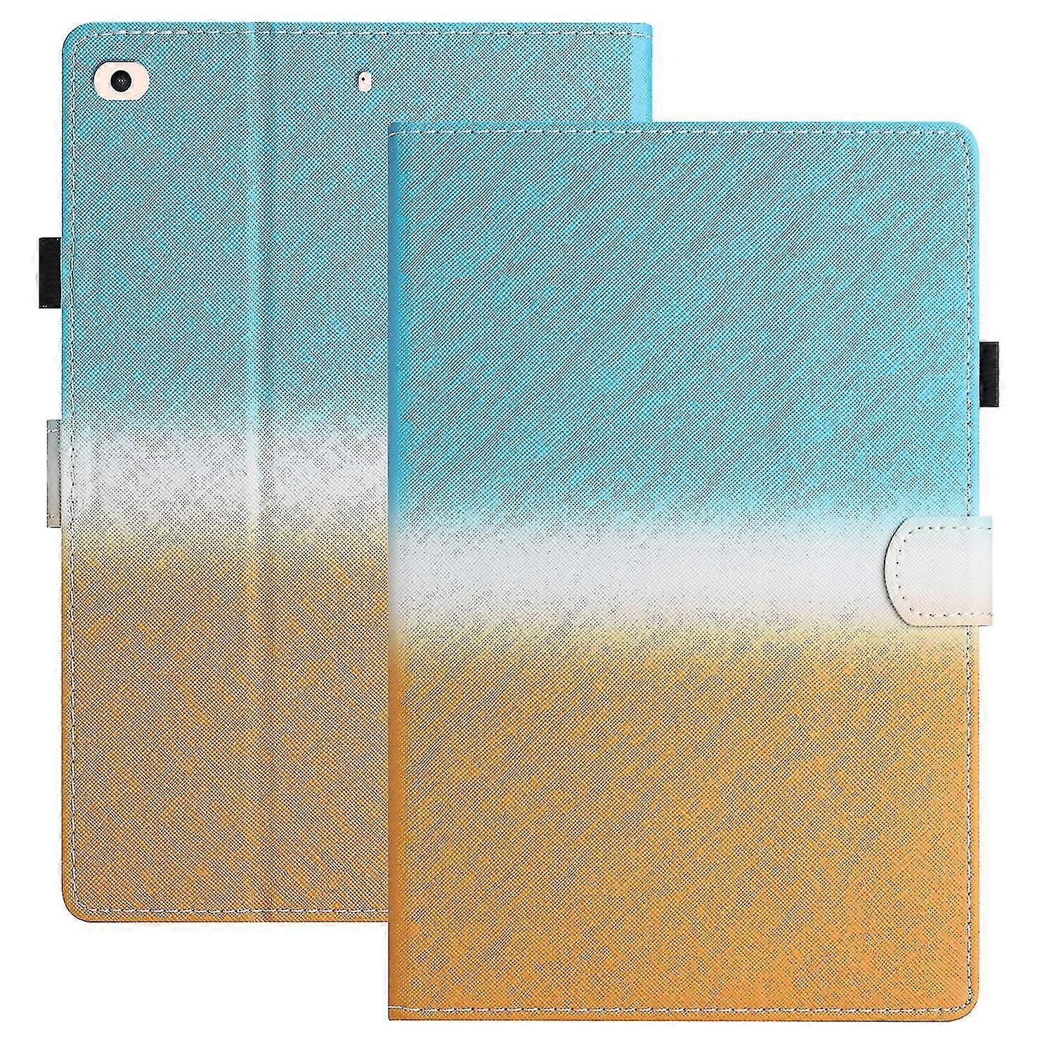 PU leather cover with inner TPU case, cross-texture surface, and full protection for your device The adjustable stand provides a comfortable angle for viewing and typingGradient color leather cover design. Magnetic clasp keeps the case closed, and keeps your items safeKeep your main cards close at hand for swiping and spending on the goThe side elastic loop holder is designed for carrying your stylus pen conveniently (pen not included)Provides 2-stripes allow you to adjust your tablet to multiple stable anglesFolio-style auto wake/sleep function, saving power Compatible with: iPad Air (2013) iPad Air 2 iPad 9.7-inch (2017) iPad 9.7-inch (2018) Package included: 1 x Tablet Case Other things not included