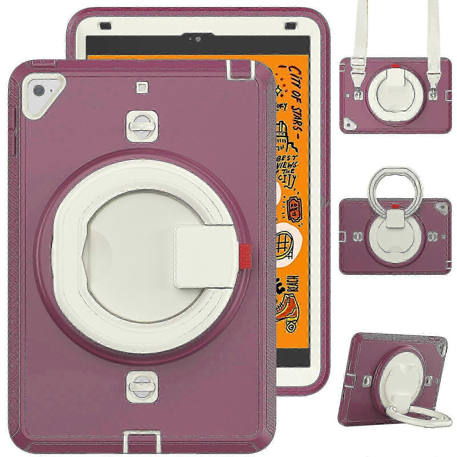 Case for iPad Mini4 /5 with 360 Rotating Handle Stand and Adjustable Shoulder Strap, Purple Red