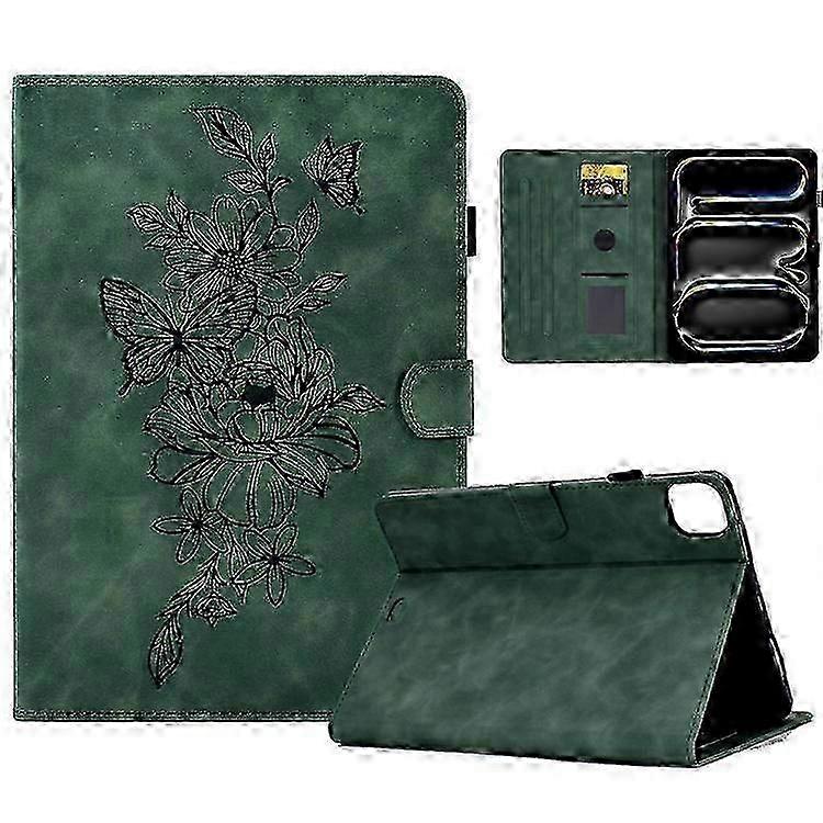 A4 Compatible For iPad Pro 11 (2024) Case Flower Butterfly Imprinted Card Slots Leather Cover