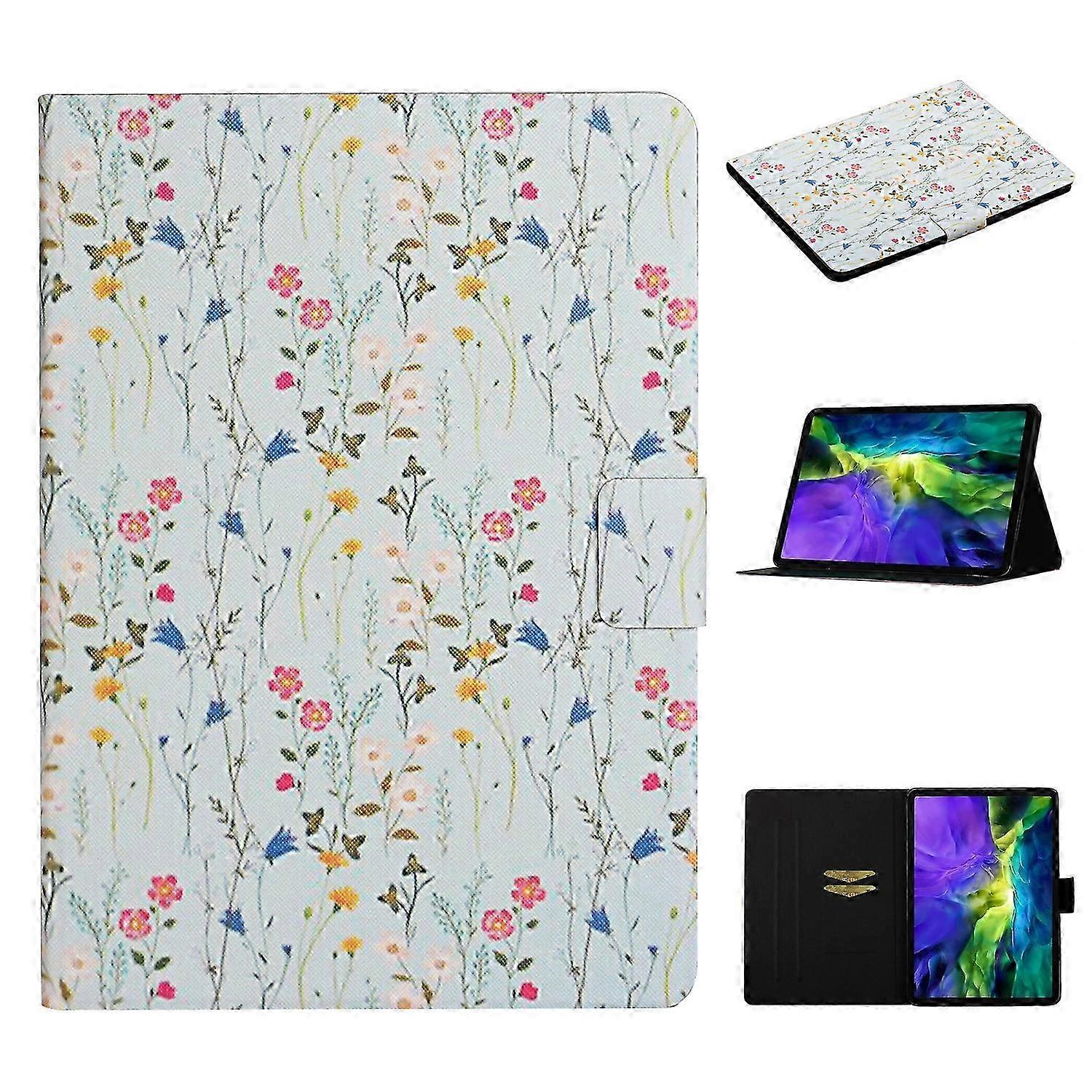 For iPad Pro 11 (2024) PU Leather Cover Pattern Printing Tablet Stand Case with Card Slots Small Flowers