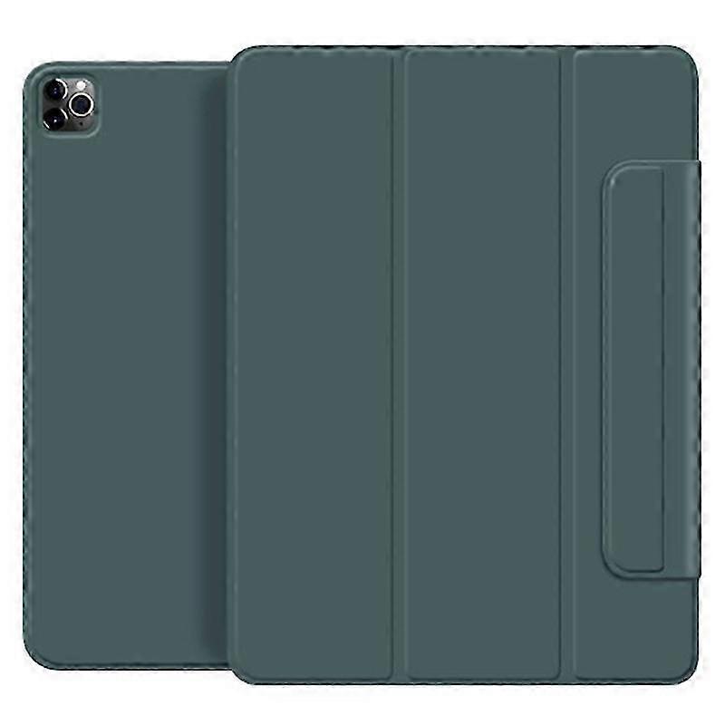For iPad Pro 13 (2024) Case PU Leather Tablet Protective Cover Magnetic Clasp Stand - Dark Green