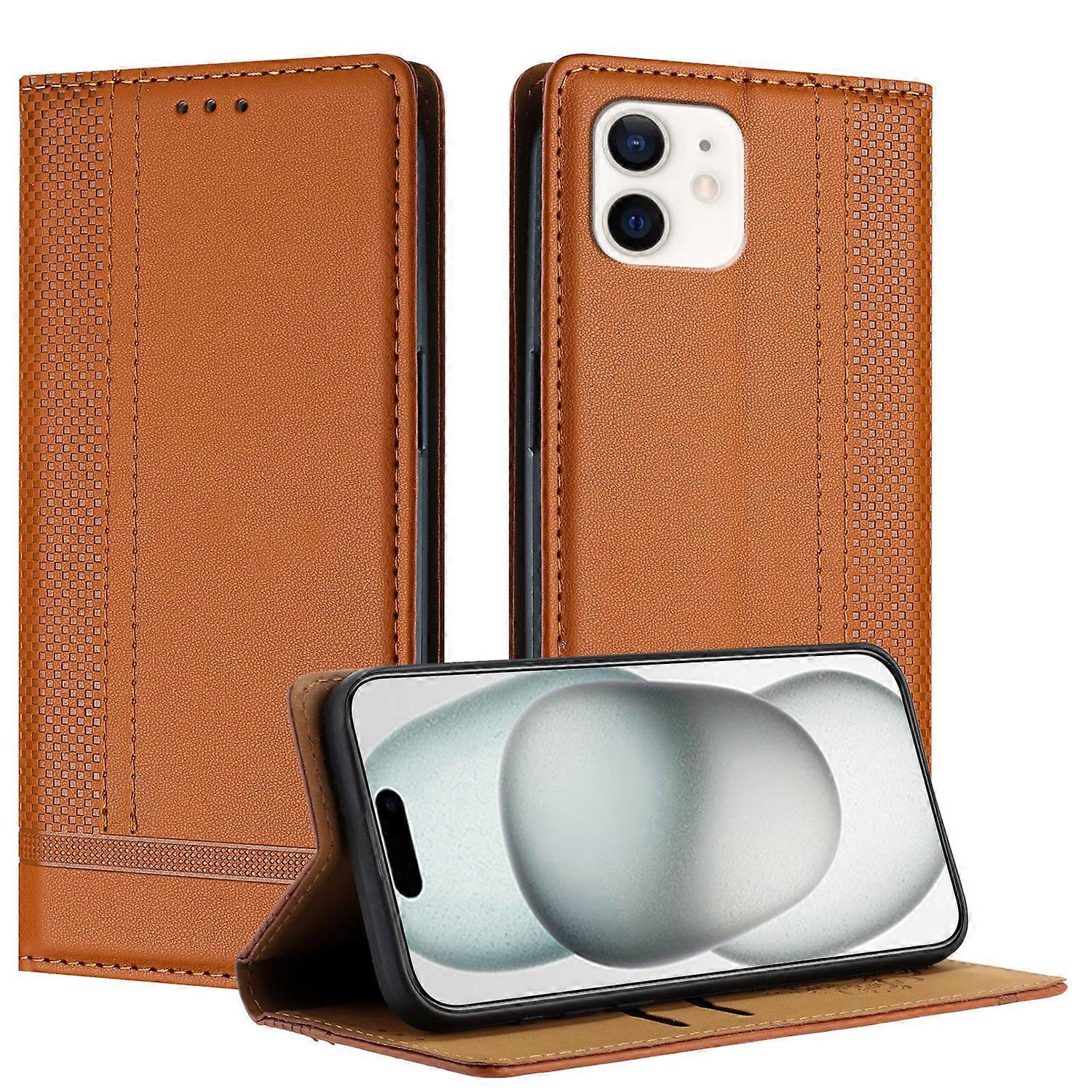 Case For iPhone 12, Vintage Stitch Leather Wallet Case Card Slot Kickstand Magnetic Closure Shockproof Flip Folio Case Cover