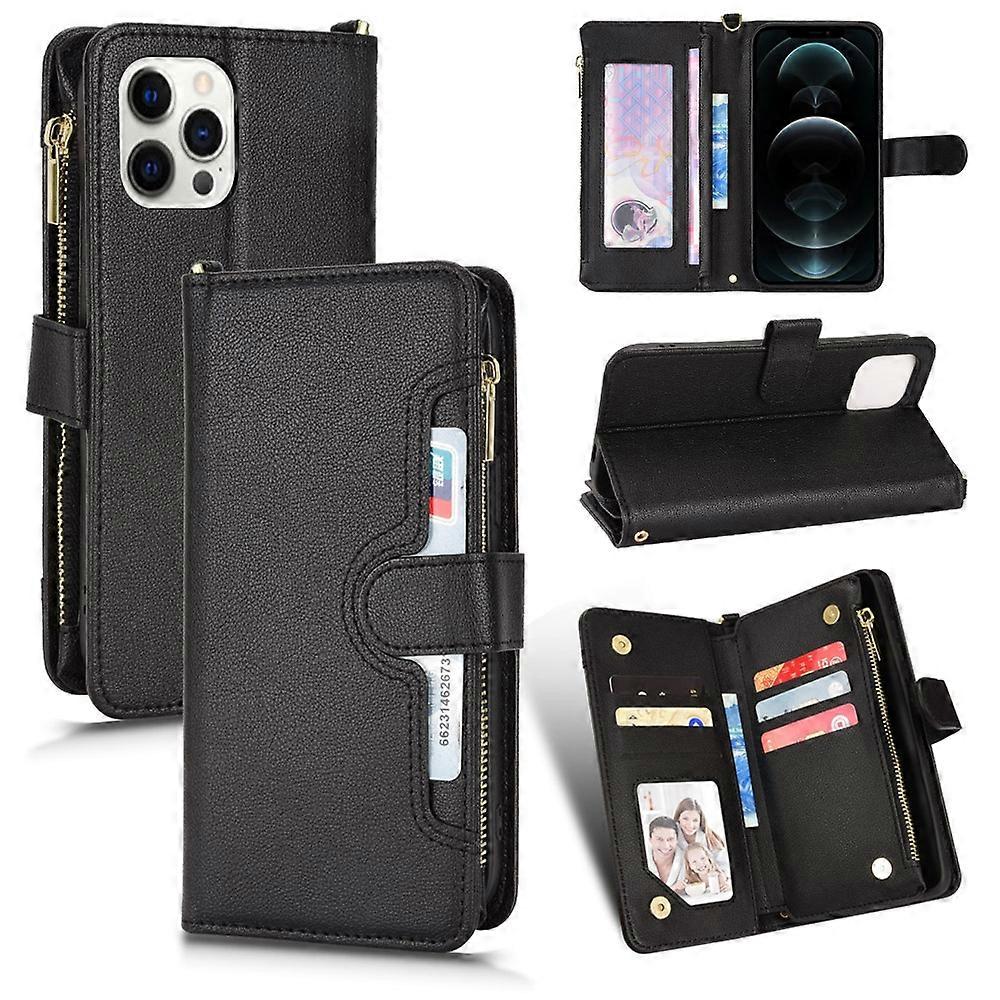 For iPhone 12 Pro Max Litchi Texture Zipper Leather Phone Case