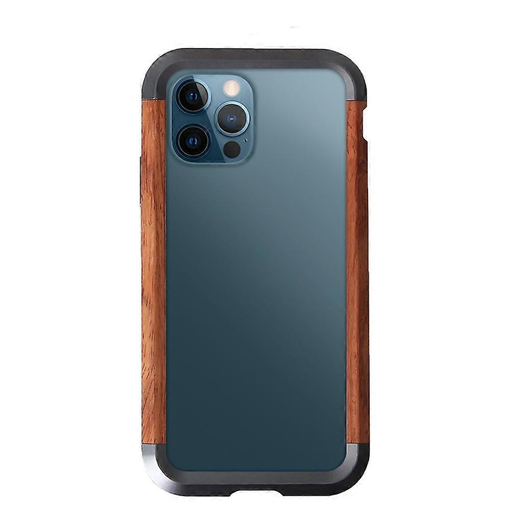 For iPhone 12 Pro Max R-JUST Metal + Wood Frame Protective Case