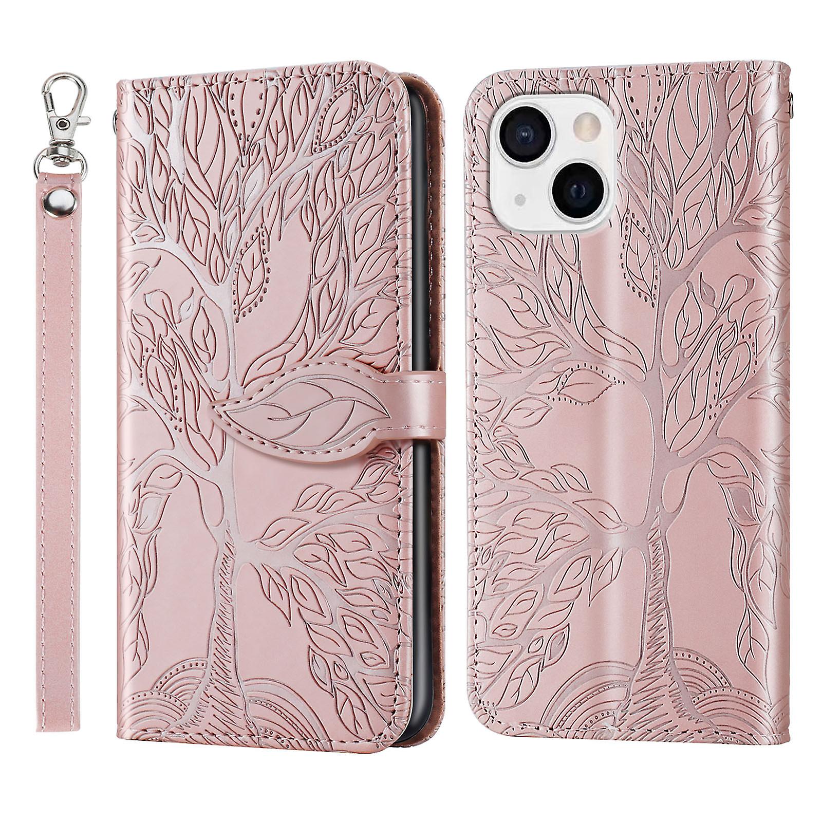 For iPhone 13 Mini Wallet Case,2 Credit Card Slot ID Card Holder,PU Leather Flip Case with Strap - Rose Gold