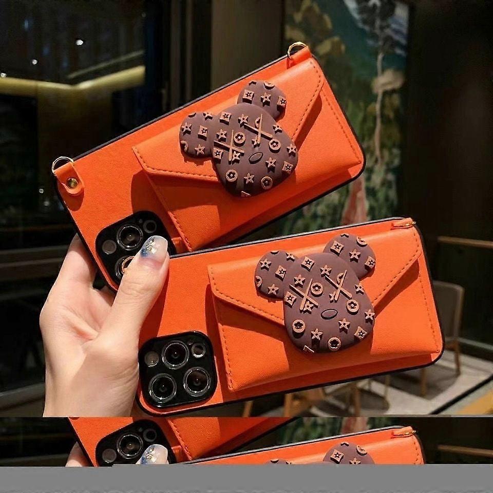 Case For Iphone 13 [violent Bear] Orange Coin Card Holder Crossbody Trendy Fashion No1151