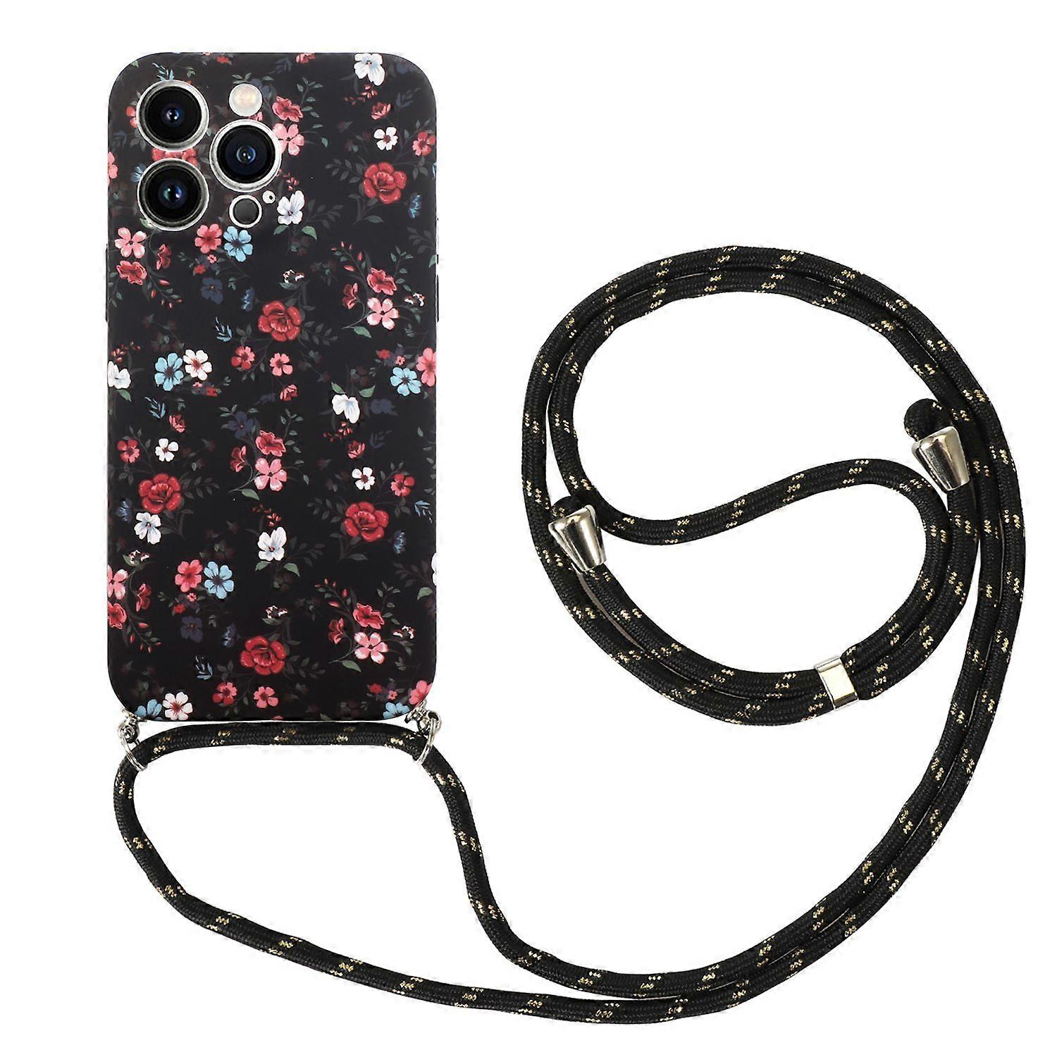 For iPhone 13 Pro 6.1 inch IMD Flower Pattern Printed Phone Cover Flexible TPU Protective Case with Lanyard