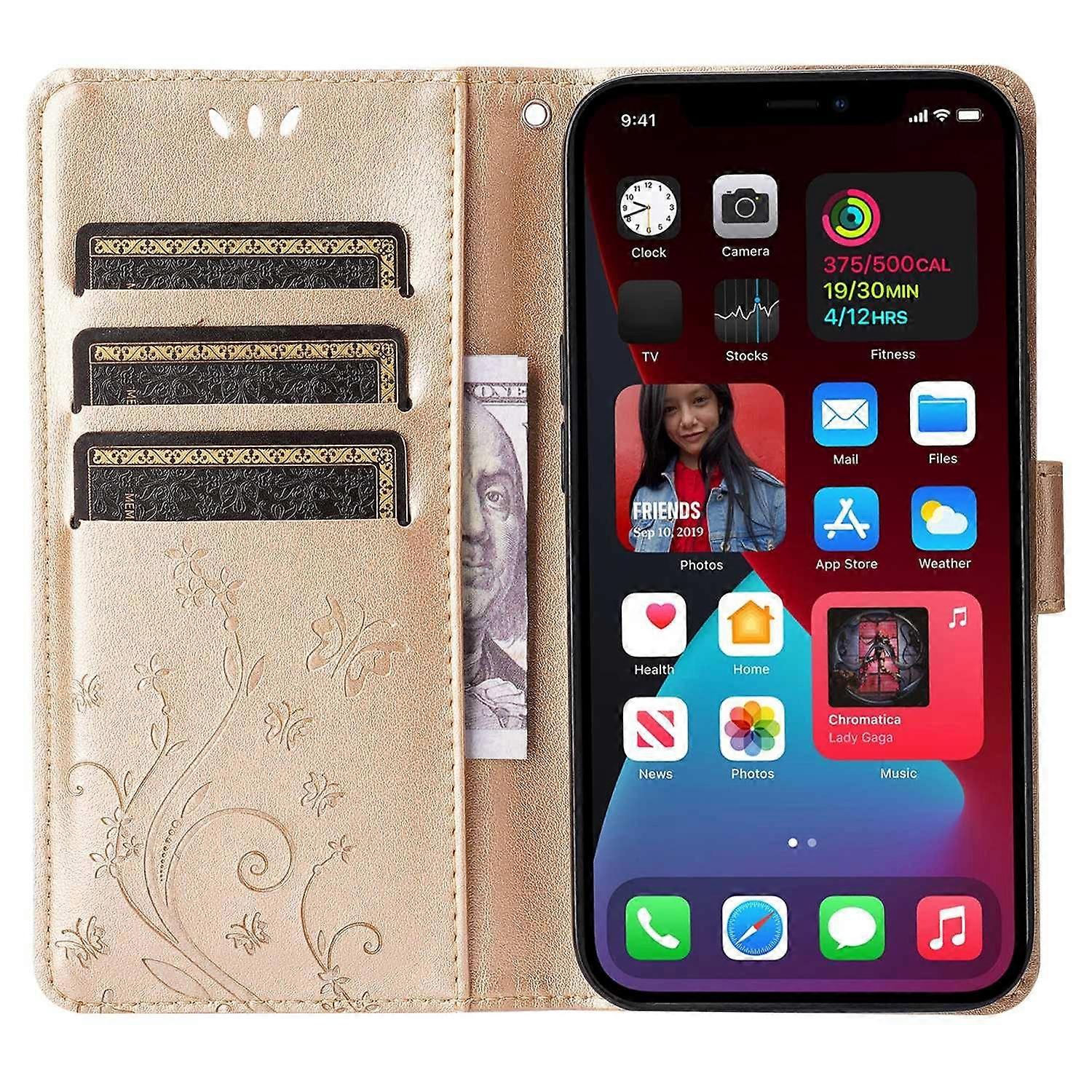 For iPhone 14 6.1 inch Shockproof PU Phone Case Imprinted Butterflies Wallet Stand Phone Cover