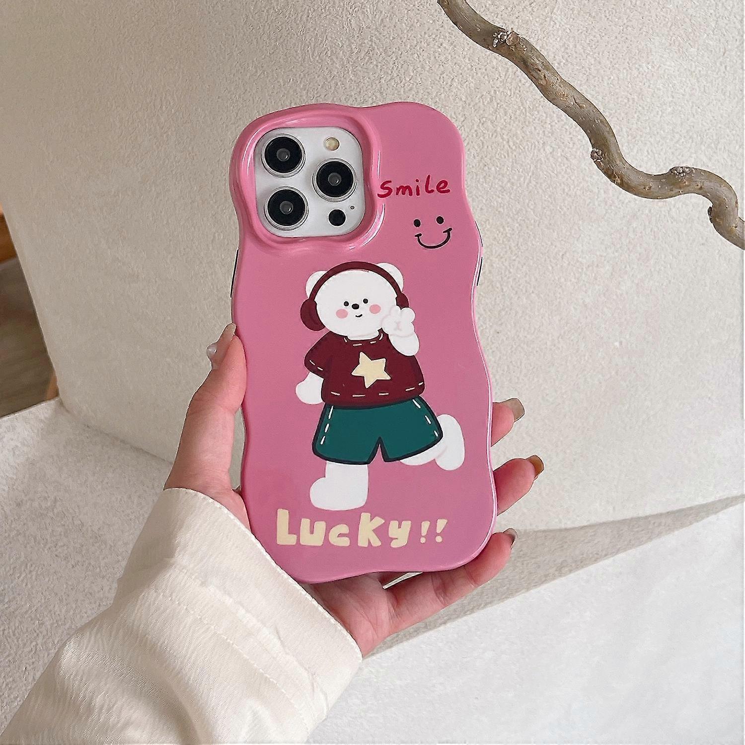 N9T For iPhone 14 Pro Case Cute Animal Pattern Wavy Edge TPU Phone L1K Cover - Bear