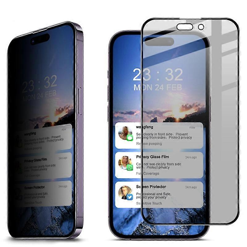 For iPhone 14 Pro IMAK HD Full Screen Anti-spy Tempered Glass Protective Film 1. Ultra-thin and excellent flexibility. The screen is thick. You do not need to worry whether the reflexes of your phone would slow down after pasting the film at all. 2. High hardness. This tempered glass screen film has a high hardness, so it can prevent itself from being scratched or broken into pieces effectively and continually. If broken, the tempered glass will break into small pieces that are not sharp, making it more safer for users. 3. High definition. The film has a high light transmission. With high light transmission and low light reflection, the film can provide you with a high definition screen just as usual. 4. Functional. The screen protector can fit your phone well and make a big difference on protecting your phone from scratch, fingerprint, water, oil, dust, shock, slip and so on.When stained with water, soil, mud, oil or other attachments, it can be cleaned without effort. 5. Convenient for use. To paste the film, you need to do is to clean up the screen thoroughly. 6. Durable. With good performance and high quality, it may work for a long time. Cautions: 1. As this is a glass product, please note that the edges of the glass are vulnerable areas. 2. Using excessive force who installing or removing the screen protector may damage the product.