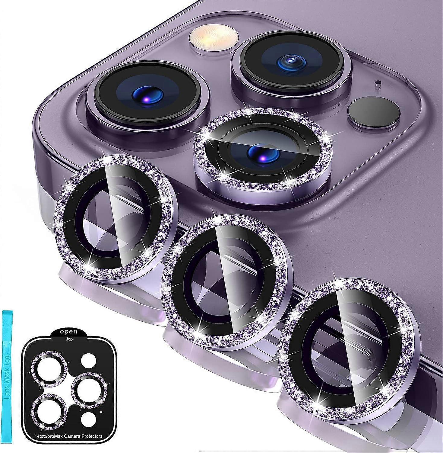 Camera Lens Protector for iPhone 14 Pro / iPhone 14 Pro Max 9H Tempered Glass Camera Cover Screen Protector Metal Individual Ring Protector for iPhone