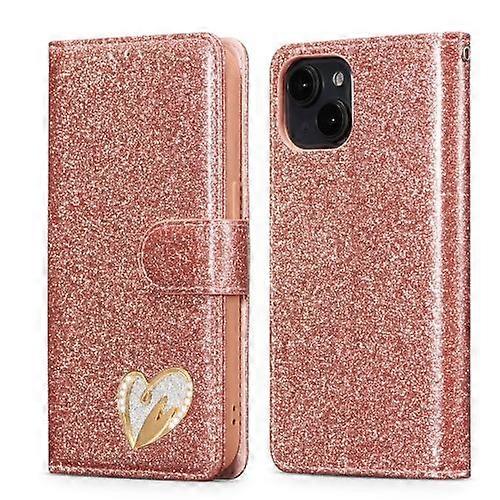For iPhone 15 Glitter Powder Love Leather Phone Case
