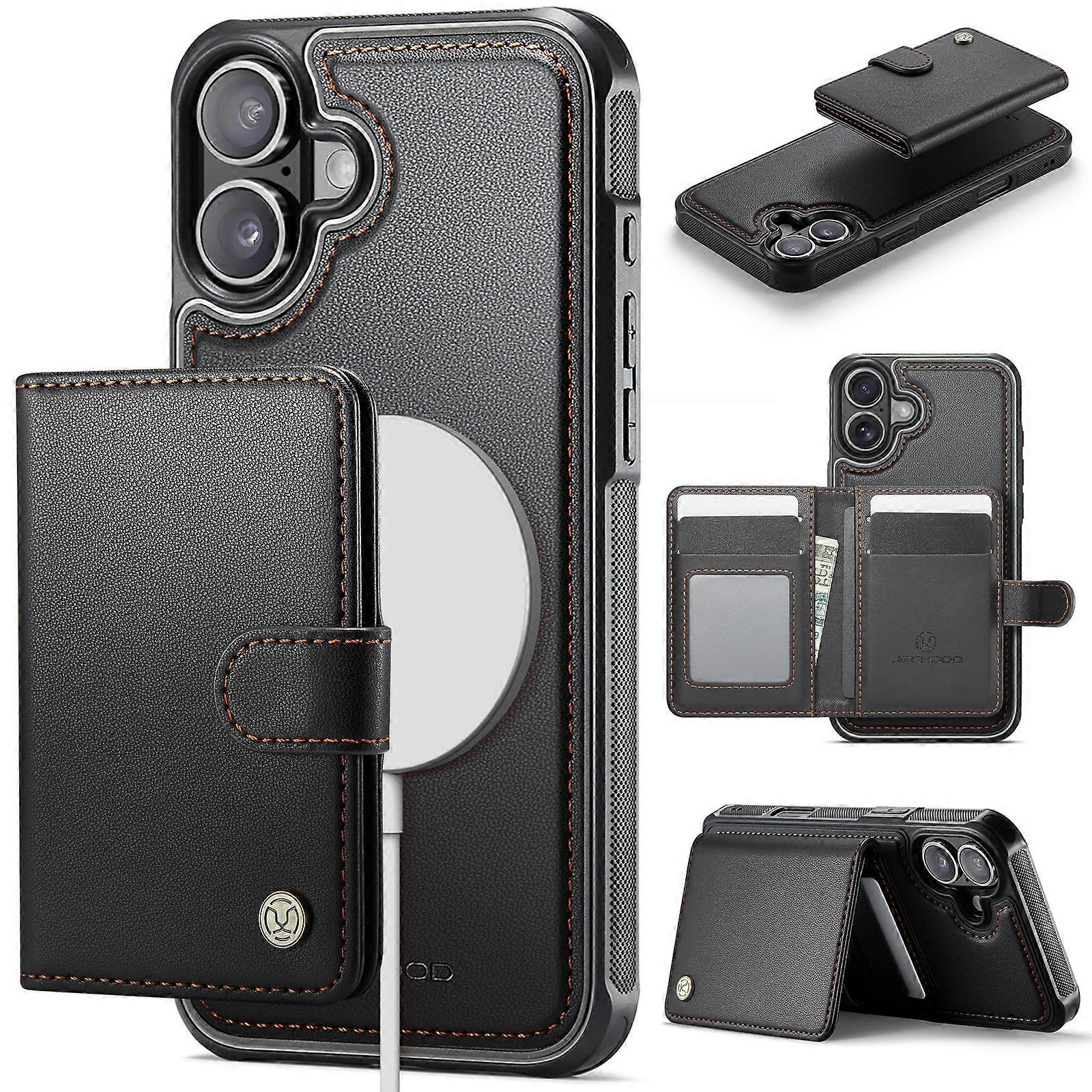 Compatible For iPhone 16 Case JEEHOOD J09 RFID Card Holder Leather Back Phone Cover Compatible with MagSafe