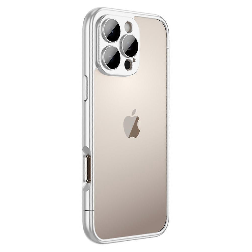 For iPhone 16 Pro Max Bumper Case Electroplating Hard PC Protective Cover with Camera Lens Film