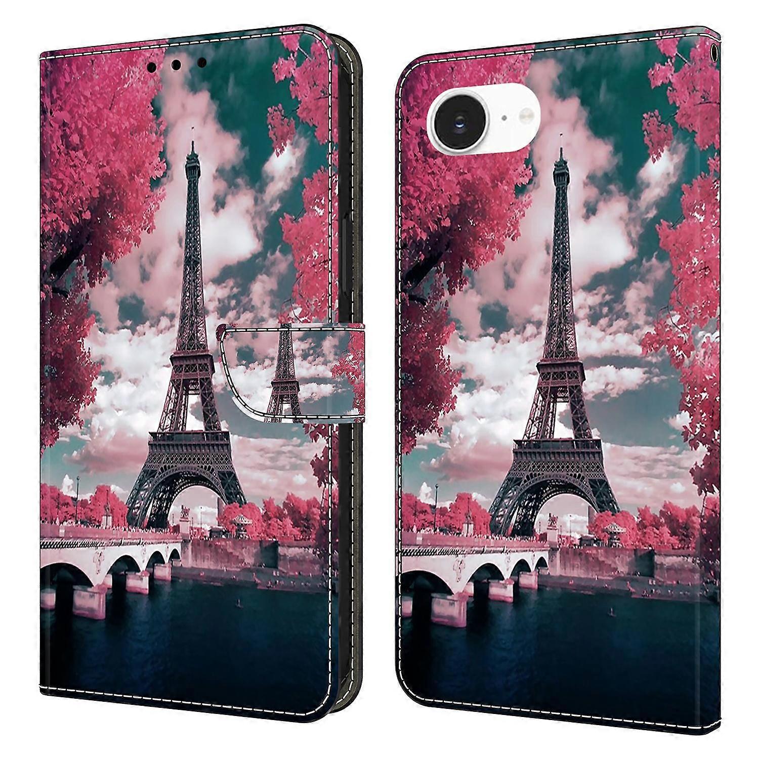For iPhone 16e Wallet Case Pattern Printing Stand Leather Flip Phone Cover - Eiffel Tower