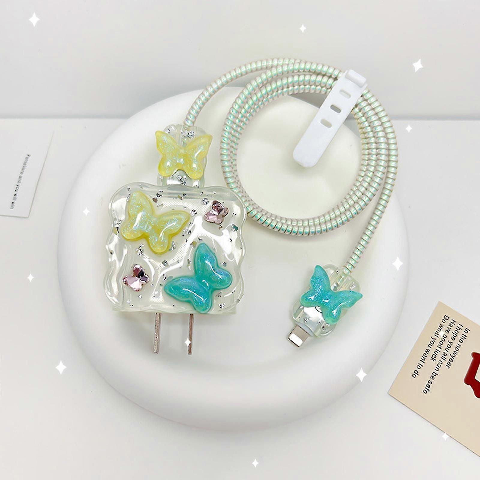 Crystal Series Fast Charger Protector For iPhone 18W 20W, Fast Charging Cable Charger Head Protective Cover, Data Cable Protective Sleeve