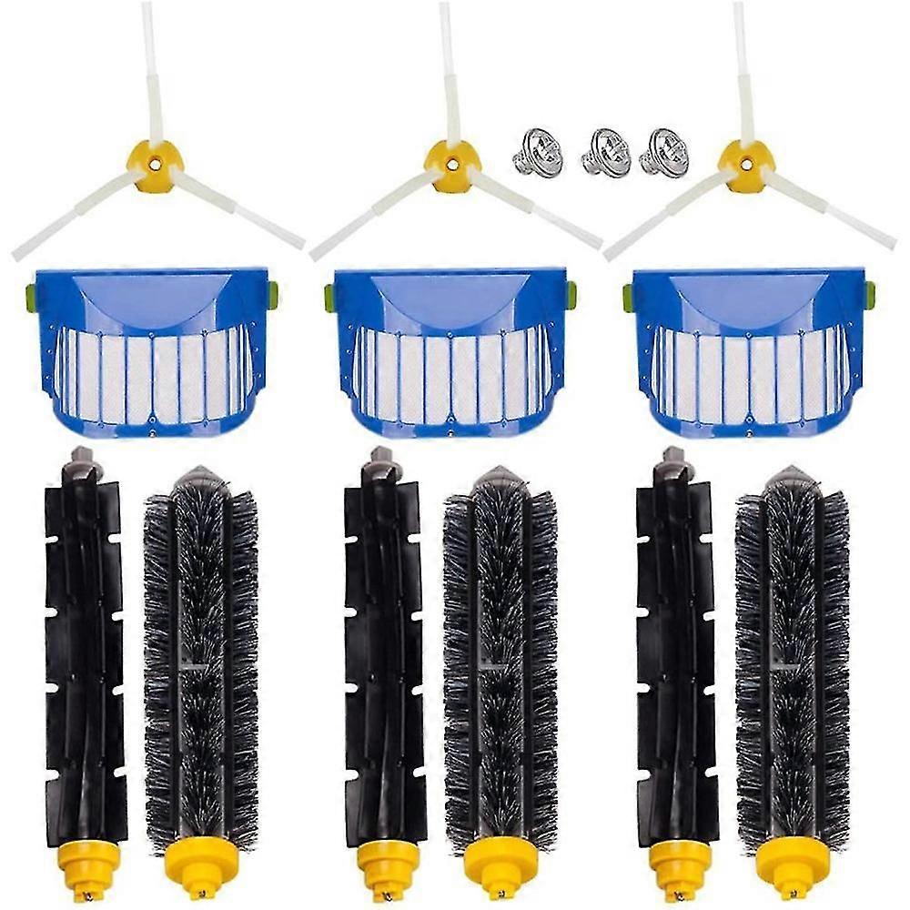 Replacement Parts Kit for iRobot Roomba 600 Series Vacuum Cleaner Filter Brush Cleaners Filter Brush Replacement for iRobot Roomba 600 Vacuum Cleaner - Replacement filter brush cleaners to keep your iRobot Roomba operating at peak performance. Our maintenance kits contain everything you need, including rotating side brushes, vacuum cleaner filters, bristle brushes and beater brushes. Filter Brush Cleaner Replacement Features: - 100% brand new and high quality Replacement Brush Filter - Premium brush filter replacement accessories for iRobot Roomba cleaners. - Compatible Filter Brush Cleaner Replacement: iRobot Roomba 528 529 and iRobot Roomba 600 Series. - Innovative side brushes for iRobot Roomba 528 529 and Roomba 600 Professional Series robots reach deep into corners and edges to remove more dirt, dust and debris. Package includes: 3 triangular side brushes + 3 filters + 1 set of main brushes + 1 blade + 1 cleaning cylinder