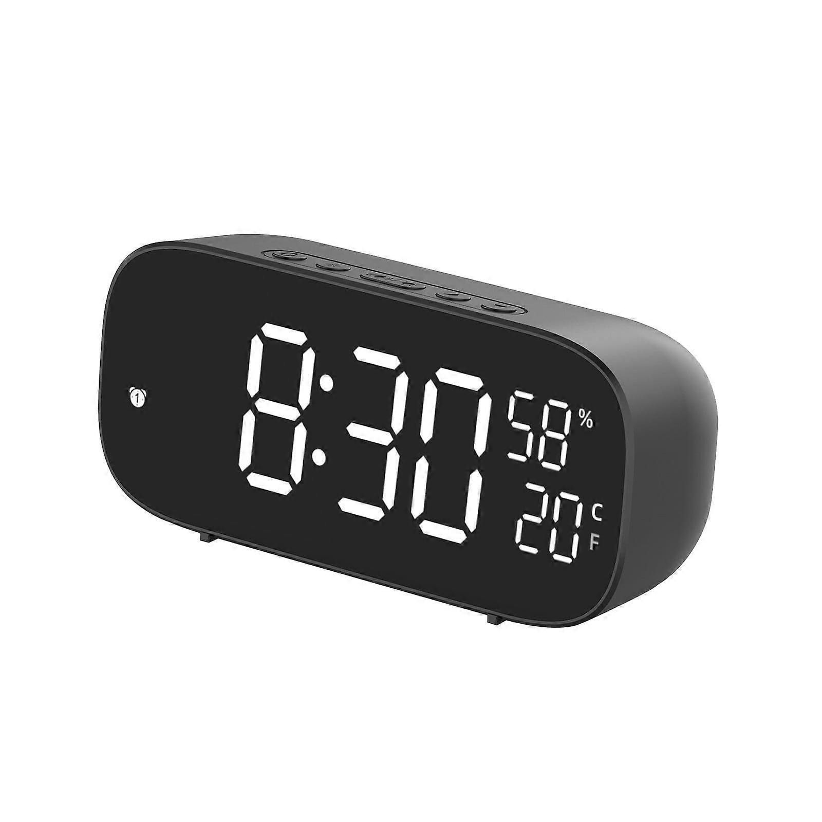 Jacenvly Black Tech LED Digital Clock with Alarm, Voice Control, Temp & Humidity, Plug-in Dual Use, RGB Lights for Bedroom