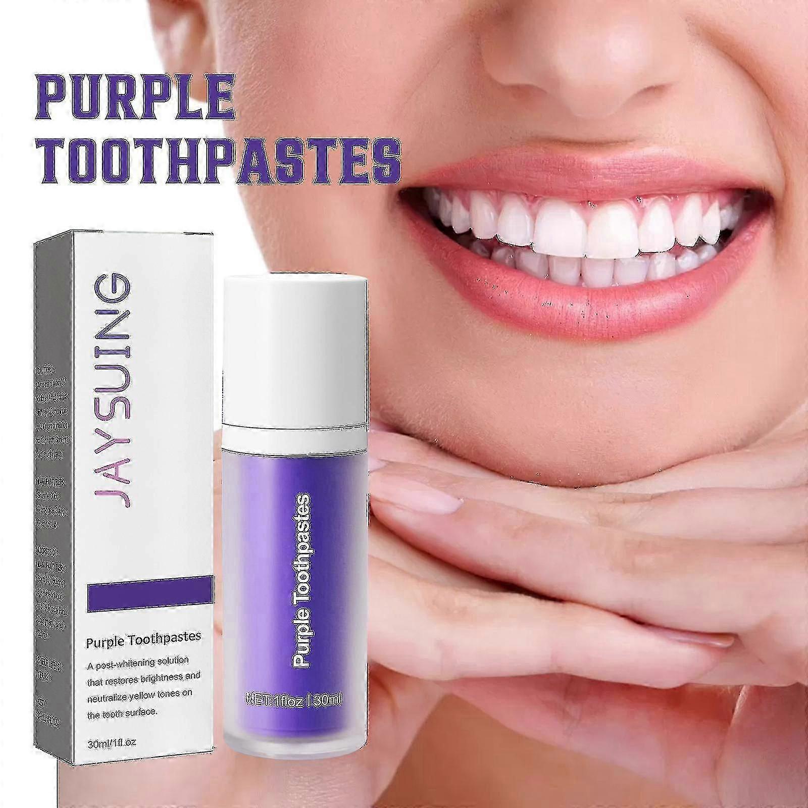Jaysuing Purple Teeth Whitening Toothpaste Cleans Teeth Stains Oral Odor Cares Gums Whitening Toothpaste BF