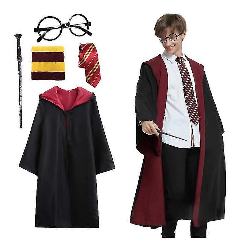 Jianghuo Wizard Costume, Wizard Robe With Tie, Round Dark Glasses, Sash And Wand, Fancy Dress Accessory Kit For Halloween Carnival Party Fancy Dress