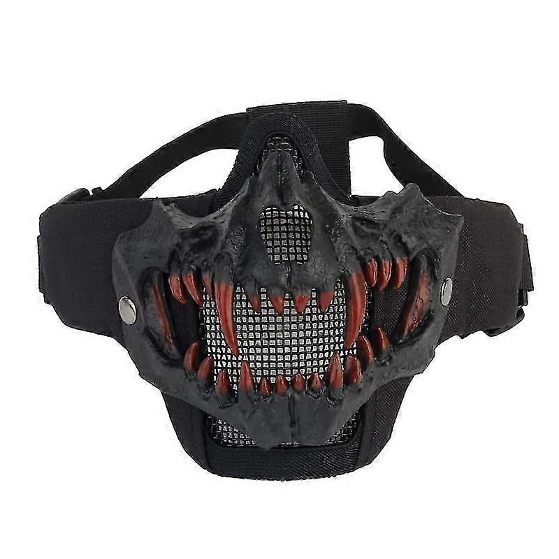Jianghuo Half Face Skull Horror Mask,Tactical Foldable Mesh Skull Mask For Halloween For Cs Hunting Paintball Cosply,Bk01
