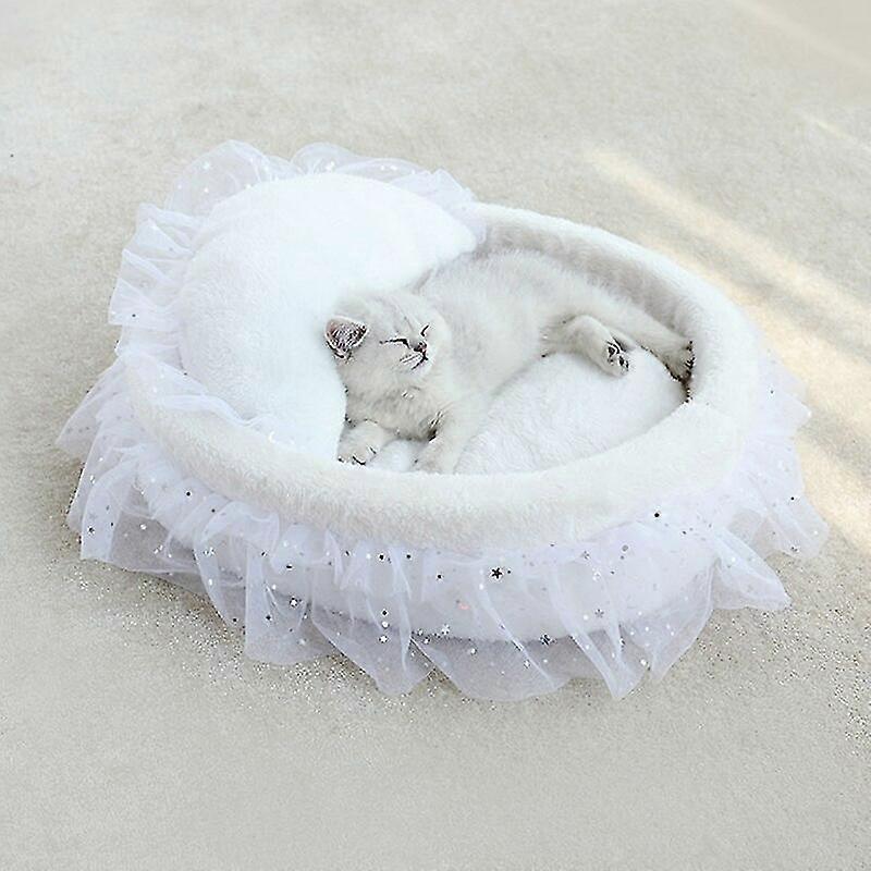 Jianghuo Princess Cat Bed Soft Lace Pet Sleeping Bed For Cats Kitten Puppy Sofa Warm Round Pet Nest With Pillow Cushion Cat