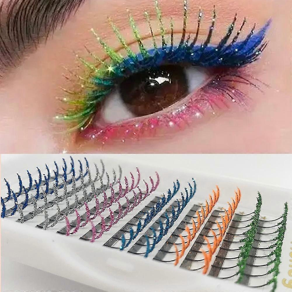 Jianghuo 12 Rows Mix Color Fashion Glitter Fluffy Fairy Spikes False Eyelashes Shiny Fancy Diamond Colorful Eyelash Extension For Make Up