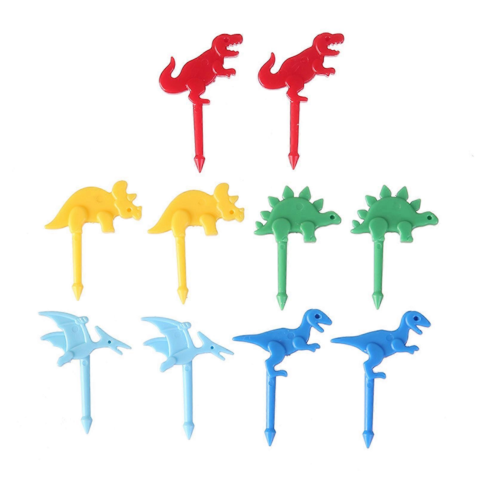 JiKaiX 10Pcs Fruit Fork Dinosaur Shape Cake Fruit Toothpick Reusable Children Food Picks for Bento Lunch Decoration