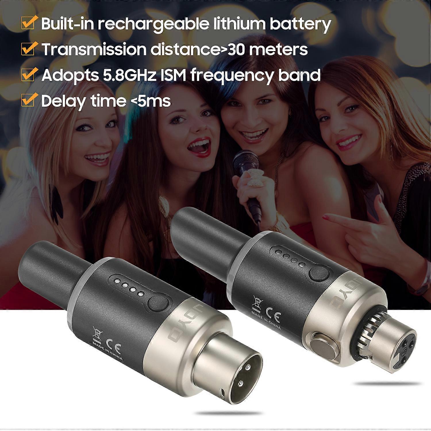 Features 1、Rechargeable Wireless Microphone: both the transmitter and the receiver built in rechargeable lithium battery, charging USB cable included. 2、4 Switchable Channels: with indicator light for each channel, and also has status indicator circle. 3、Long Transmission Distance: the wireless mic system has high stability that has the transmission distance greater than 30 meters. Specifications: The wireless microphone system is specially designed for moving-coil microphone, changing microphone into wireless one, user-friendly setup and without cables, suitable for various situations. Features: Rechargeable Wireless Microphone: both the transmitter and the receiver built in rechargeable lithium battery, charging USB cable included. 4 Switchable Channels: with indicator light for each channel, and also has status indicator circle. Long Transmission Distance: the wireless mic system has high stability that has the transmission distance greater than 30 meters. High Performance: signal delay less than 5ms. Use open 5.8GHz ISM frequency band. 24bit audio resolution with sampling frequency of 48K. Specifications: MW-1 RECEIVER: Power Supply: Built in lithium battery Battery Capacity: 3.7V, 400mAh Signal to Noise Ratio(SNR): 105dB Frequency Response: 20Hz~20KHz Receiving Sensitivity: -85dBm Delay Time: <5ms Received Frequency: 5.8GHz frequency Sampling Rate: 24-bit / 48Khz Anti-jamming Method: Frequency hopping Output Impedance: 680Ω Signal Distortion: <0.02% Port's Type: XLR male connector Gain: 0dB Item Size: 90 * 30mm / 3.54 * 1.18in MW-1 TRANSMITTER: Power Supply: Built in lithium battery Battery Capacity: 3.7V, 400mAh Frequency Response: 20Hz-20KHz Delay Time: <5ms Transmission Power: 7dBm Sample Rate: 24-bit / 48Khz Working Frequency: 5.8GHz frequency Input Impedance: 3.3kΩ Anti-jamming Method: Frequency hopping Port's Type: XLR female interface Item Size: 95 * 30mm / 3.74 * 1.18in Material: Metal Item Weight: 159g / 5.61oz Package Weight: 275g / 9.72oz Package Size: 16.3 * 11.6 * 3.7cm / 6.42 * 4.57 * 1.46in Packing List: 1 * Transmitter 1 * Receiver 1 * USB Cable 1 * Manual (English) Package List 1 * Transmitter 1 * Receiver 1 * USB Cable 1 * Manual (English)
