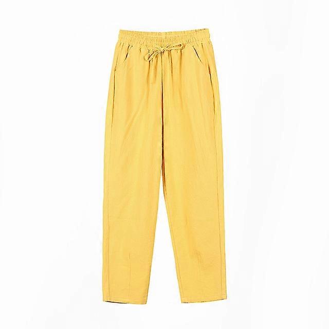 JWL- Linen Pants Women Spring Ankle Length Casual Straight Pencil Summer Solid Elastic Waist Harem Girls Pants Cotton Trousers