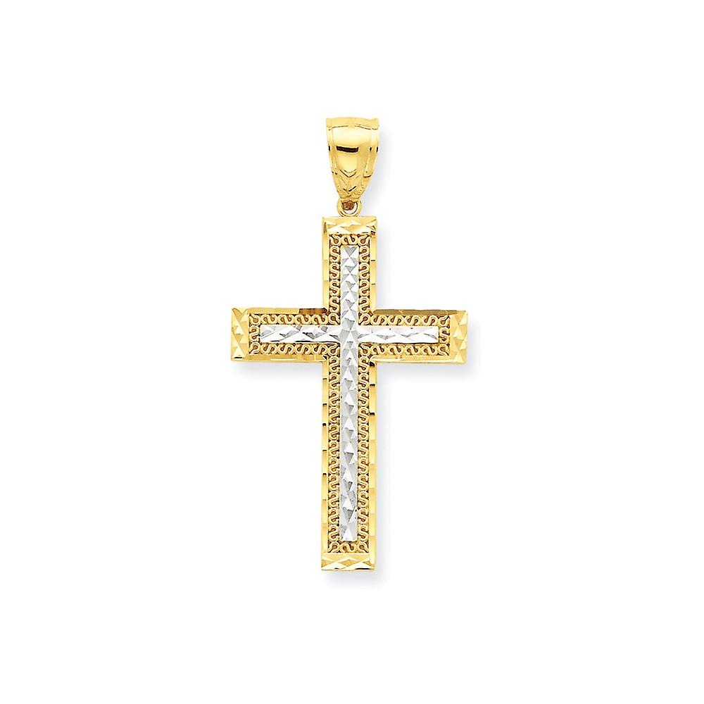 10k Yellow Gold and Rhodium Sparkle Cut Religious Faith Cross Pendant Necklace 55x28mm Wide-Pendant for Women