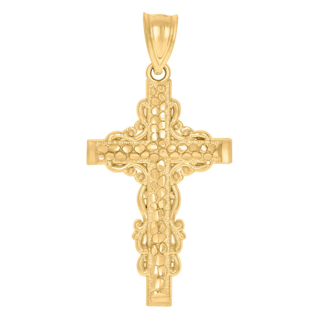 10k Yellow Gold Mens Cross Religious Charm Pendant 42.1x20.5mm Wide Necklace for Men - 2.0 Grams