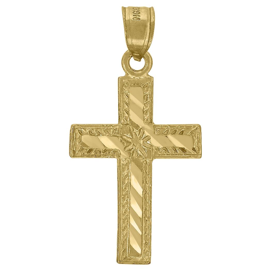 10k Yellow Gold Unisex Sparkle Cut Cross Religious Charm Pendant Necklace 31x15.70mm Wide-Pendant for Women
