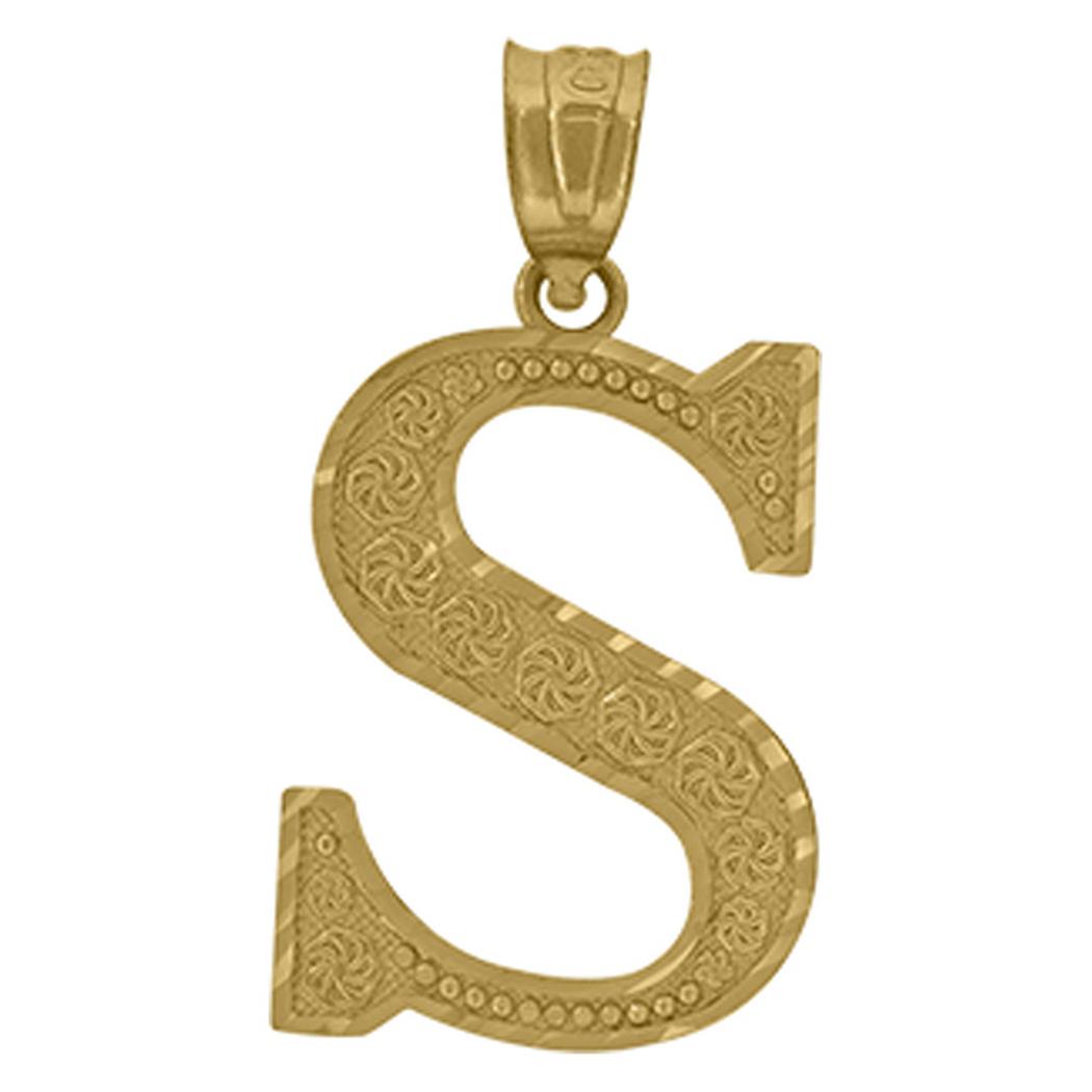 10k Yellow Gold Unisex Sparkle Cut Initial Letter S Charm Pendant Necklace 27.6x12.10mm Wide-Pendant for Women