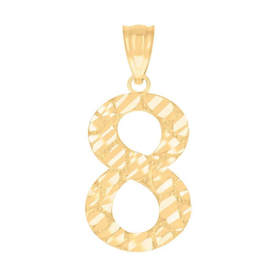 10k Yellow Gold Unisex Sport game Number 8 Nugget Charm Pendant Necklace 26x12.3mm Wide-Pendant for Women